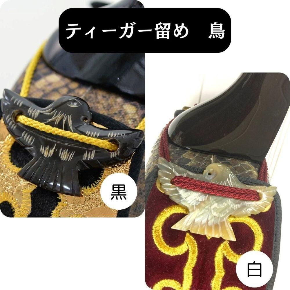 胴巻き(ティーガー)を留める紐に装着することで、薄手のティーガーでもしっかり留めてくれます。 ティーガーとコーディネートして使用することで、三線がさらに魅力的に輝きます。 楽器を持つだけでなく、その見た目も大切にしたい方にぴったりのアイテムです。 舞台での存在感を格段にアップさせ、演奏時の魅力をさらに引き立てることでしょう。 ※ひとつひとつ模様や色味が異なります。天然素材ならではの個性をお楽しみください!